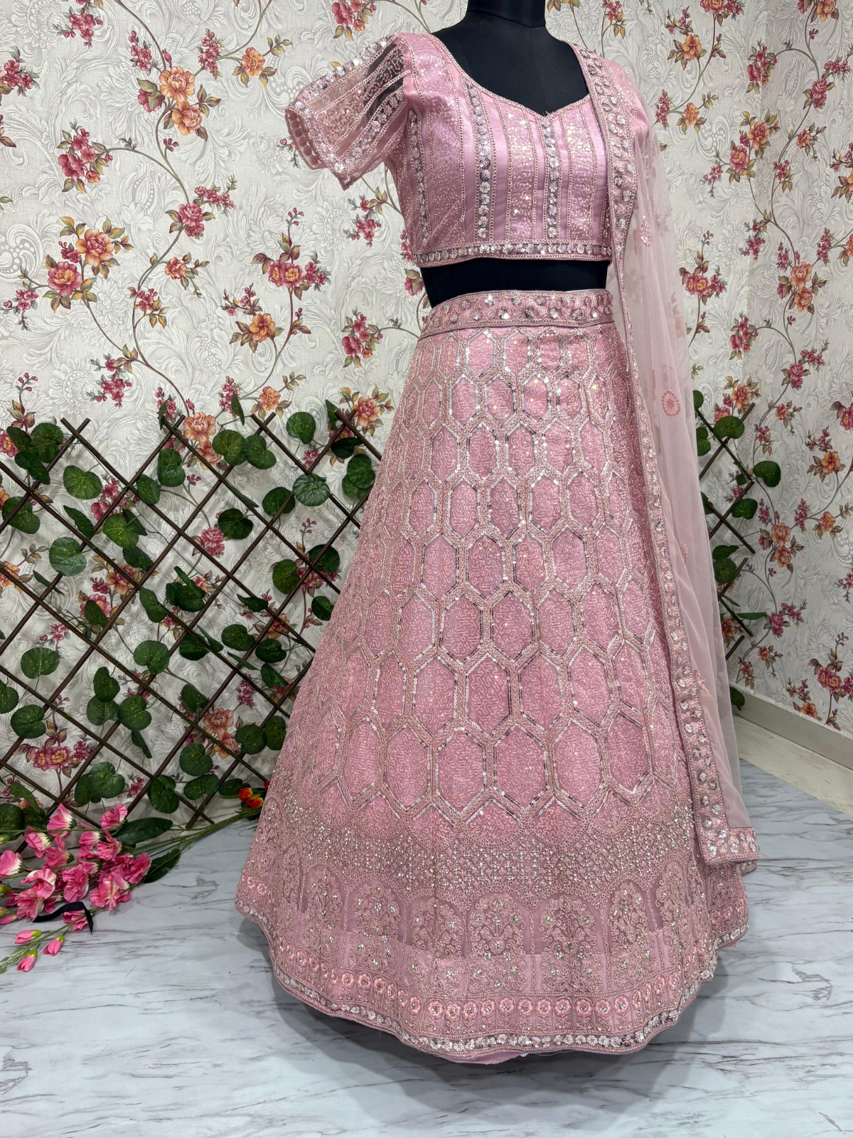 Baby Pink Color Net Fabric Sequence Work Lehenga