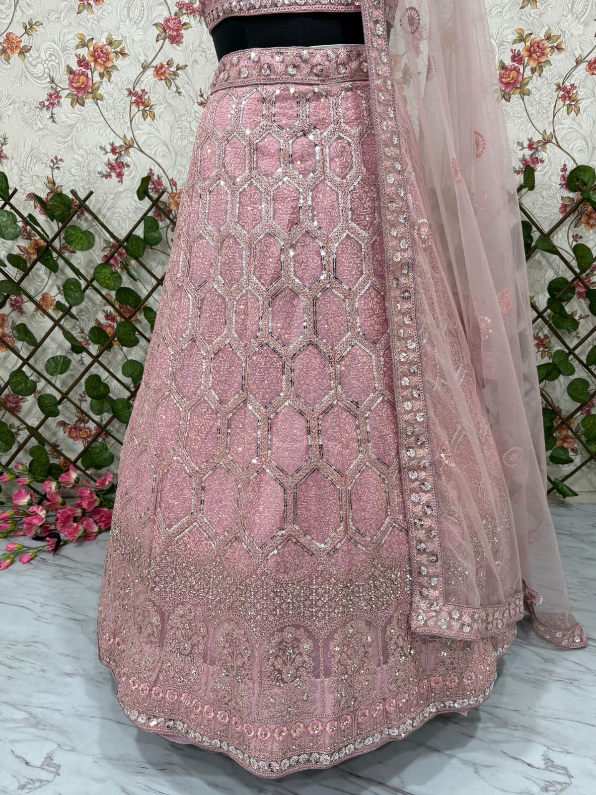 The Allure of Baby Pink Color Net Fabric Lehenga