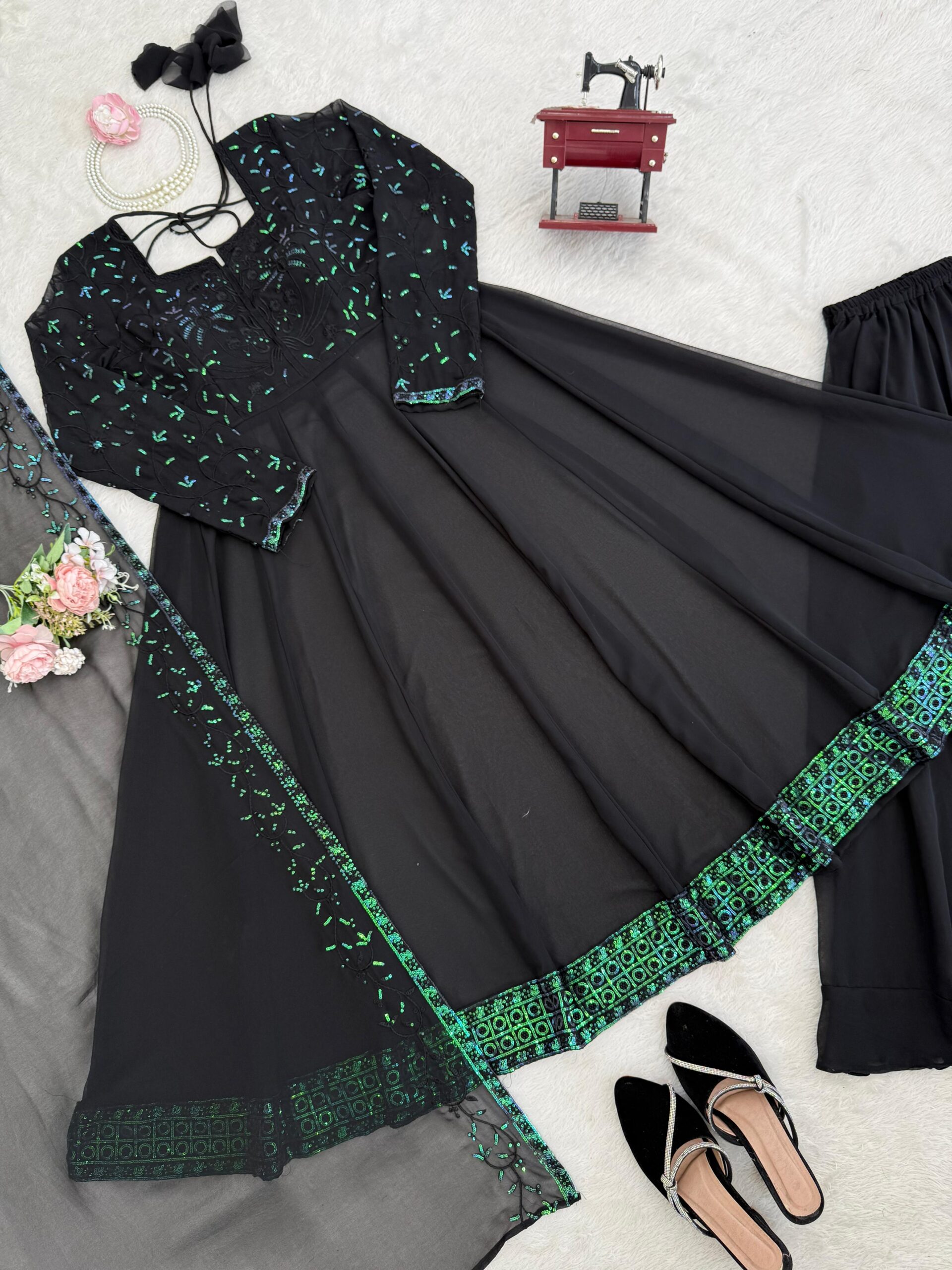 Whether you’re attending a wedding reception, a festive celebration, or a casual gathering, this ensemble is sure to make heads turn, particularly when featuring the renowned Black Faux Georgette Palazzo Suit.