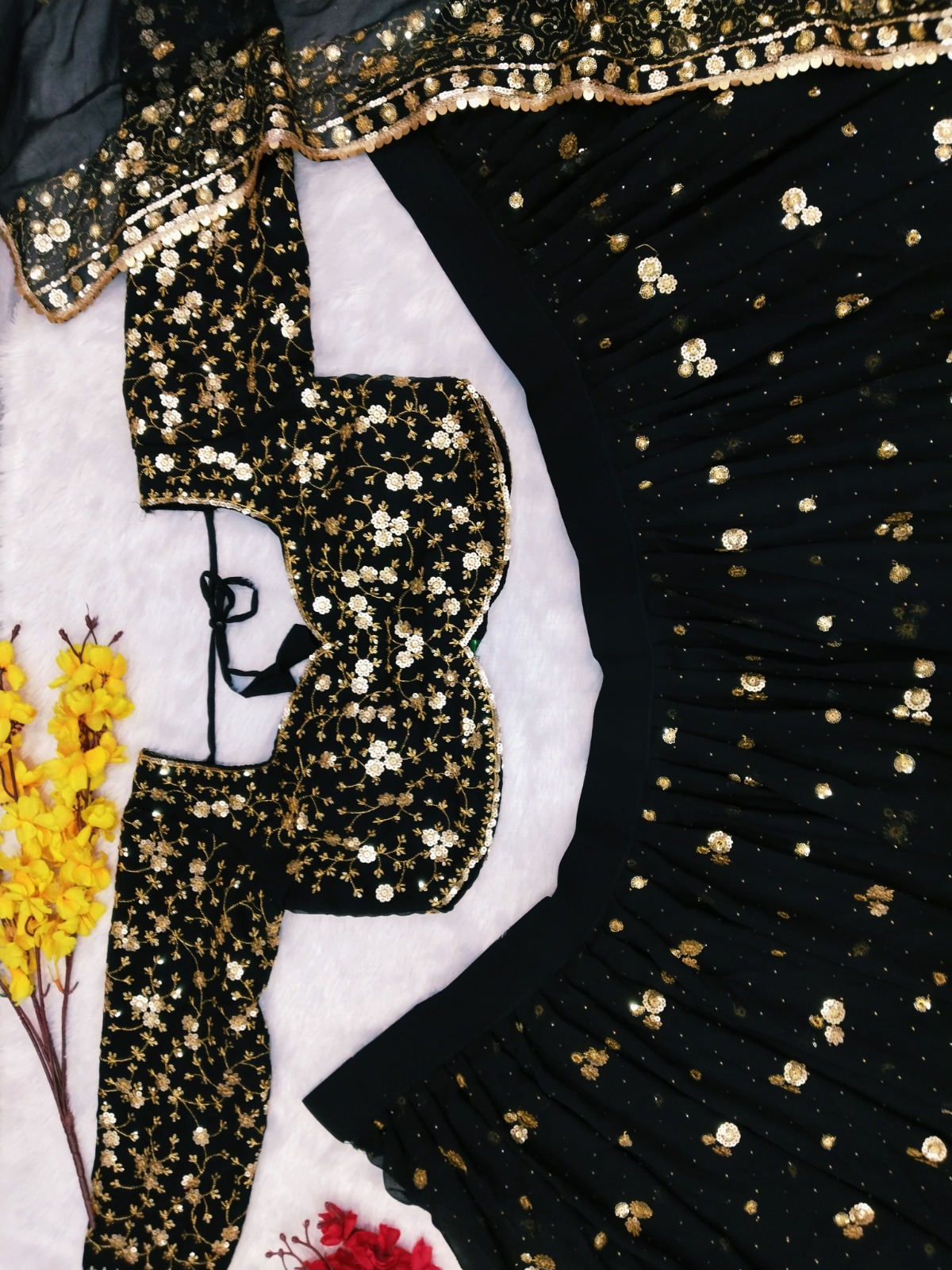 Elevate Your Wardrobe with Black Color georgette Sequence Work Lehenga