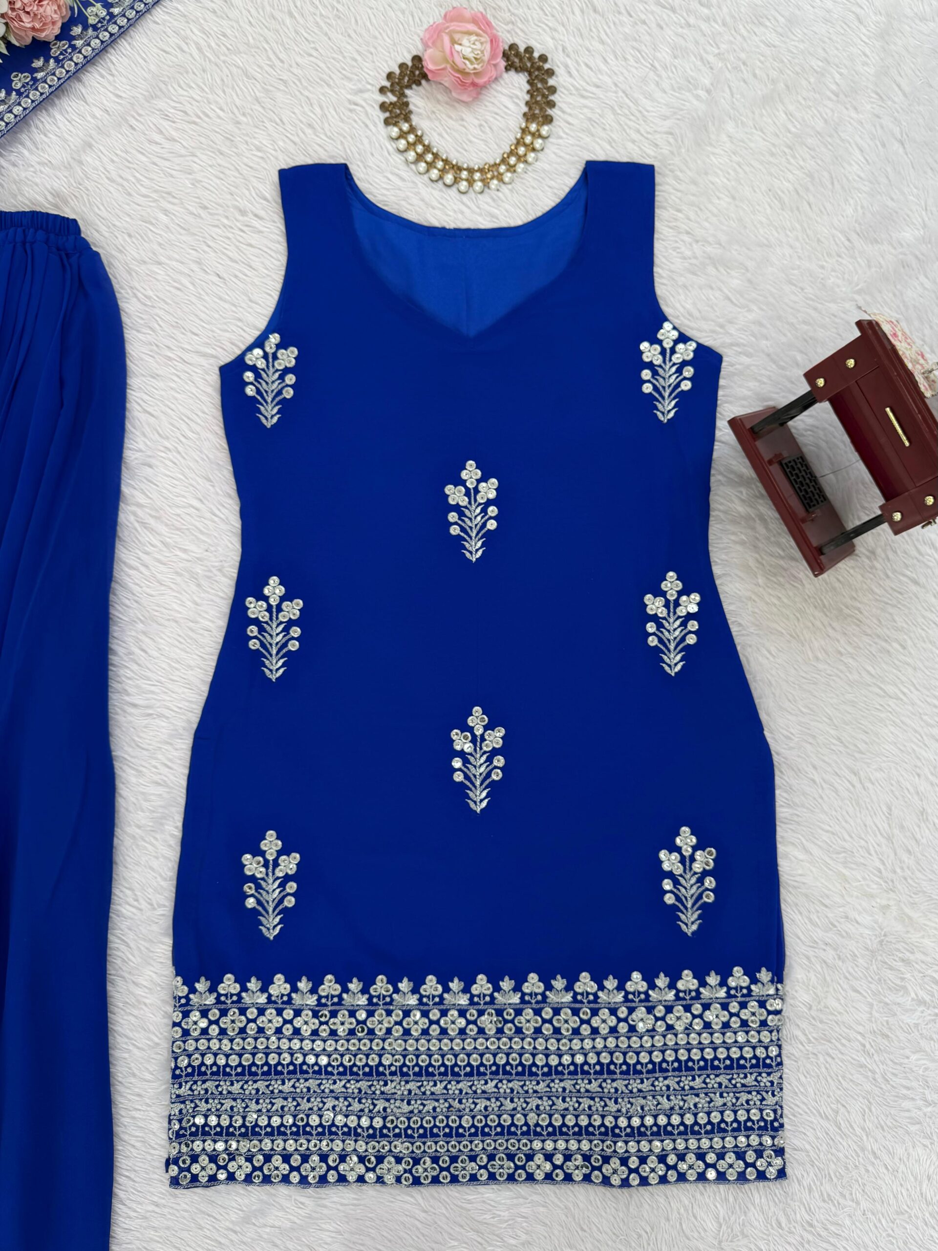 Blue Color Faux Georgette Fabric Sequence Work Palazzo Set