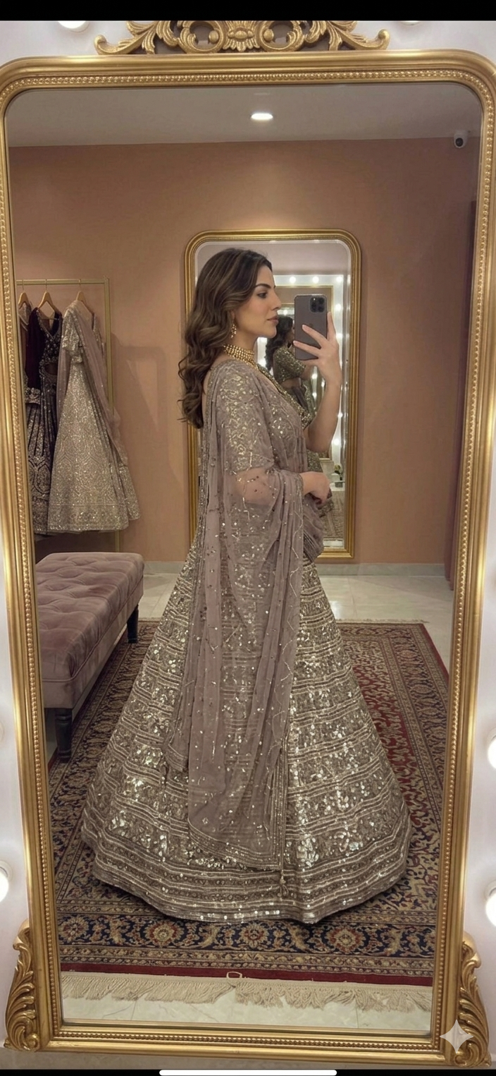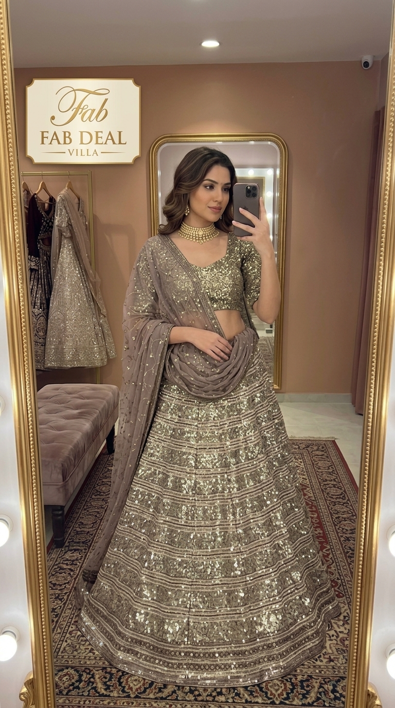 In conclusion, a Gold color Faux Georgette lehenga adorned with sequence and jari work is more than just a garment; it is a symbol of elegance and tradition that can transform any occasion. Explore the diverse styles available and find the perfect lehenga that reflects your unique sense of fashion.