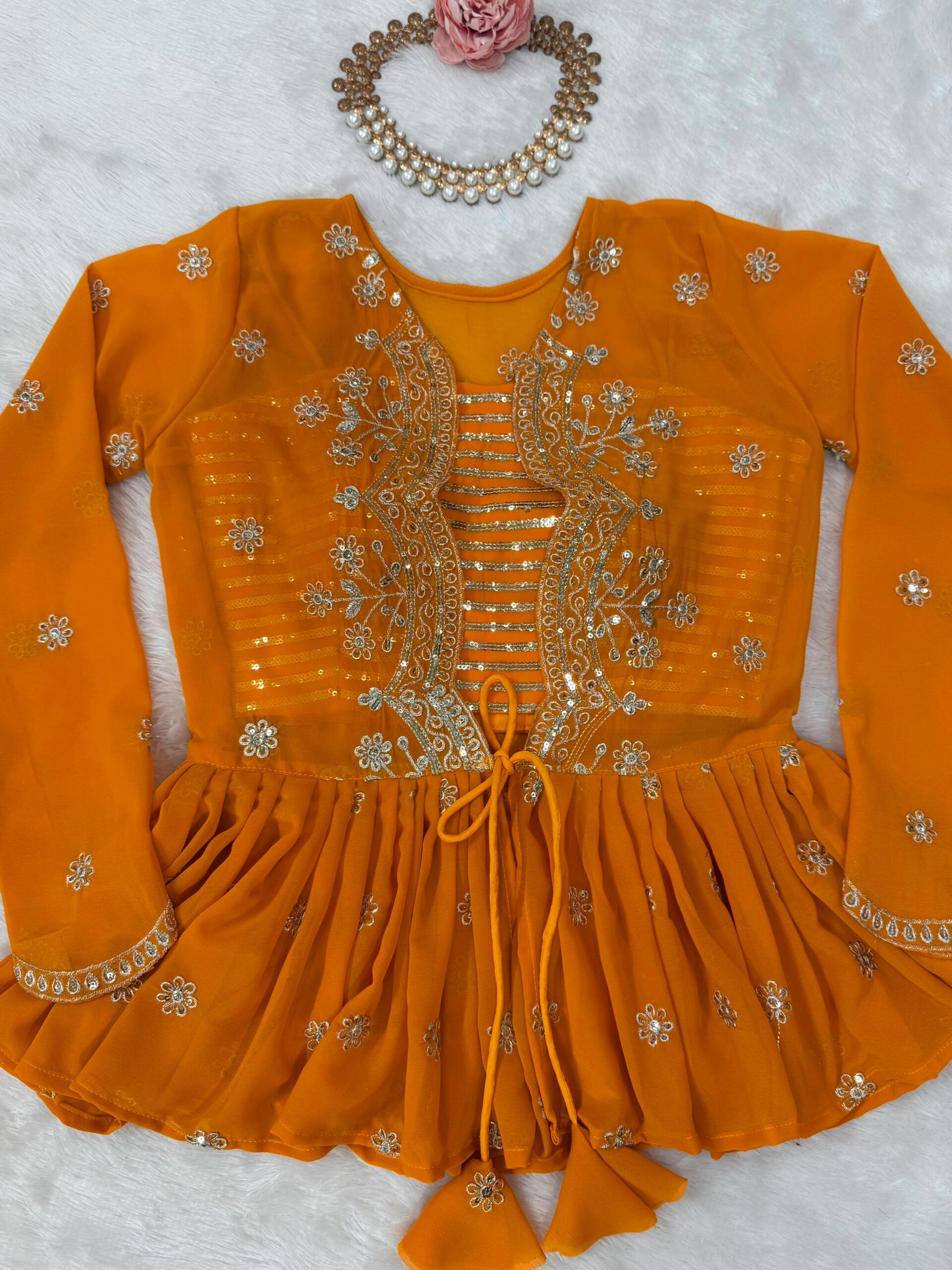 The allure of traditional attire is undeniable, especially when it comes to lehengas. Among the latest trends in ethnic wear, the haldi special yellow color faux georgette fabric lehenga stands out. This vibrant piece combines a classic silhouette with contemporary design elements, making it a must-have for festive occasions.