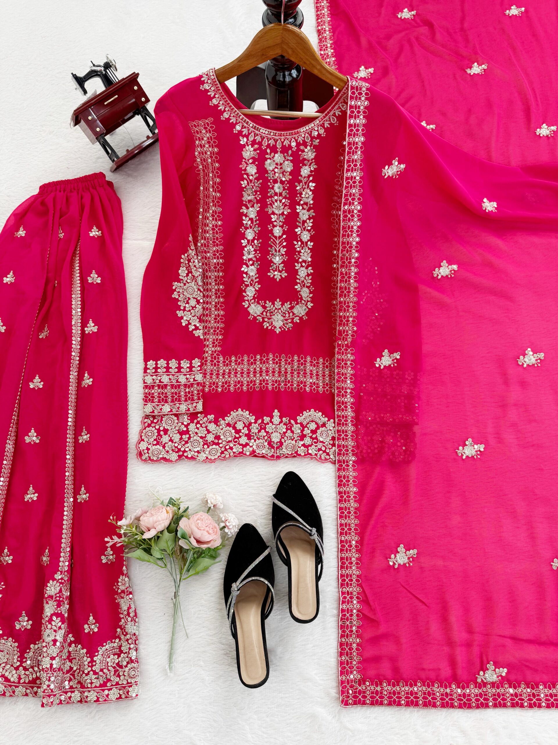 Women’s Fashion For Karva Chauth is not just a festival; it is a celebration of love and devotion. On this special day, married women fast from sunrise to moonrise, hoping for the longevity and well-being of their husbands. With such a significant meaning, it’s essential to wear something special Pink Color Palazzo Suit that resonates with the festive spirit.