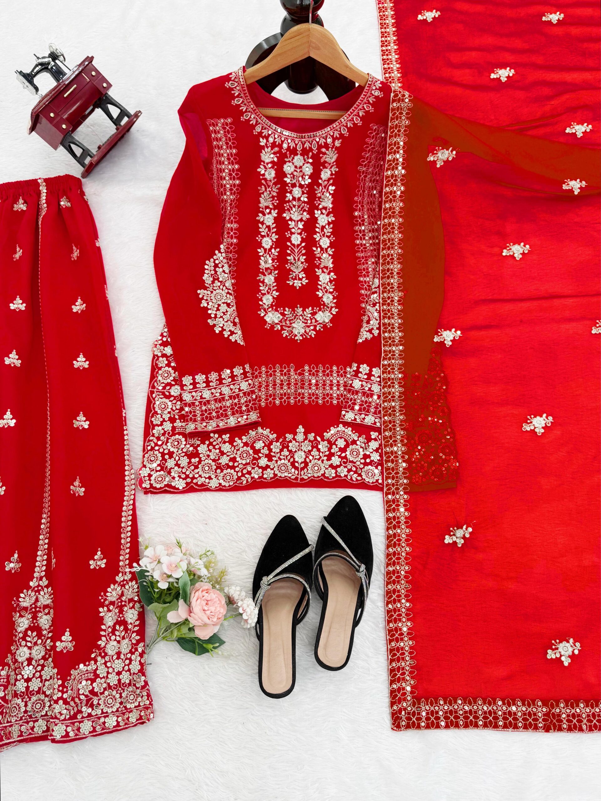 Why Choose a Red Faux Georgette Palazzo Suit?