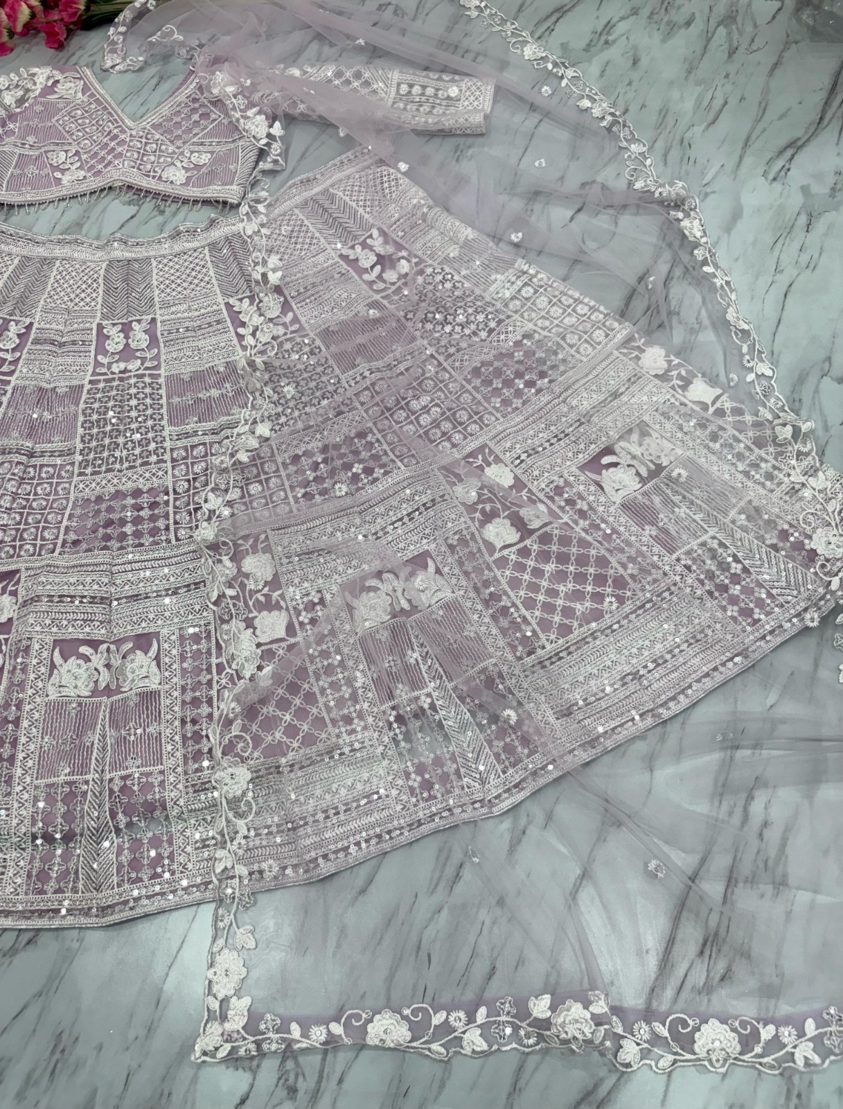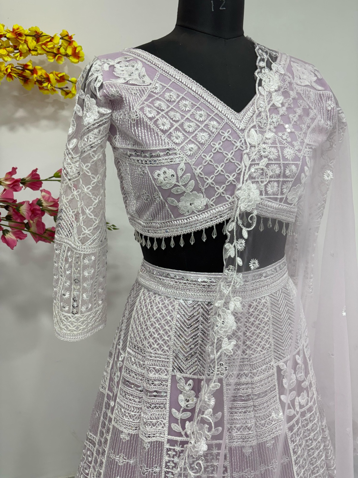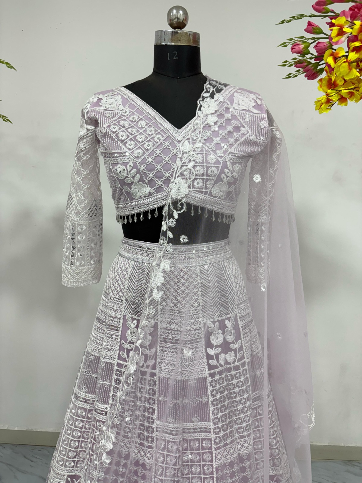 Elevate Your Elegance with a Light Purple Resham Work Lehenga
