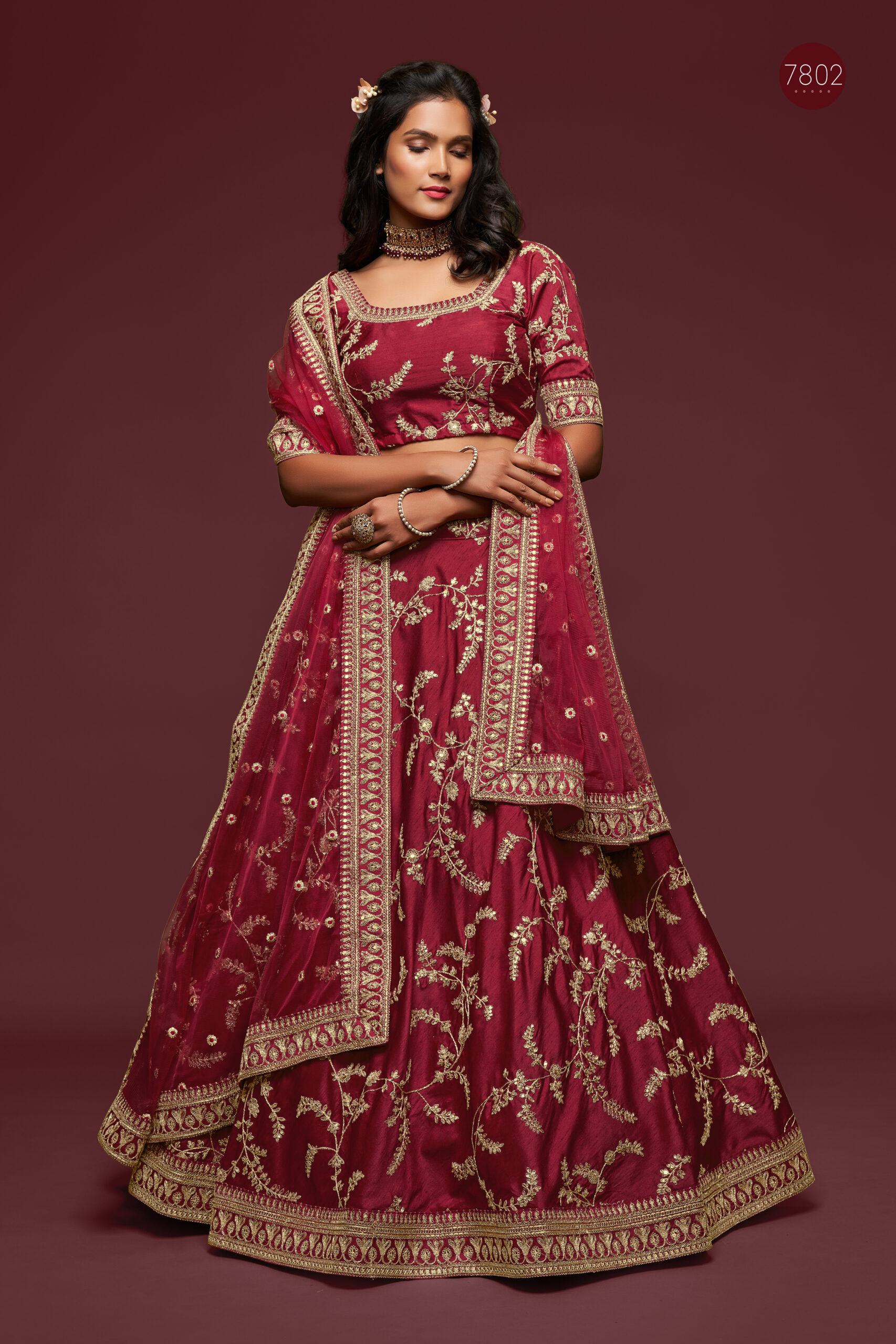 Sequence embroidery is a technique that involves stitching ornamental pieces onto fabric, adding depth and sparkle. When applied to Maroon art silk fabric, this work enhances the garment’s brightness, making it ideal for festive occasions. The shimmering sequences catch the light beautifully, making every movement graceful and enchanting. Choosing a lehenga adorned with such intricate embroidery ensures you make a statement wherever you go.