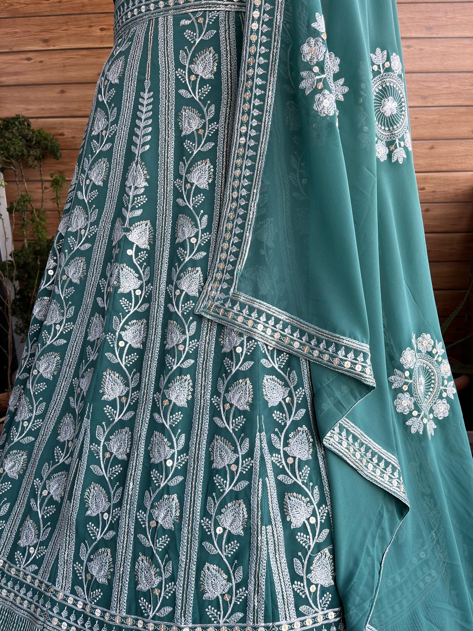 - This Mint Green Faux Georgette Lehenga Choli is a popular choice for those looking for a blend of traditional elegance and modern style, making them suitable for weddings, parties, and other special occasions.