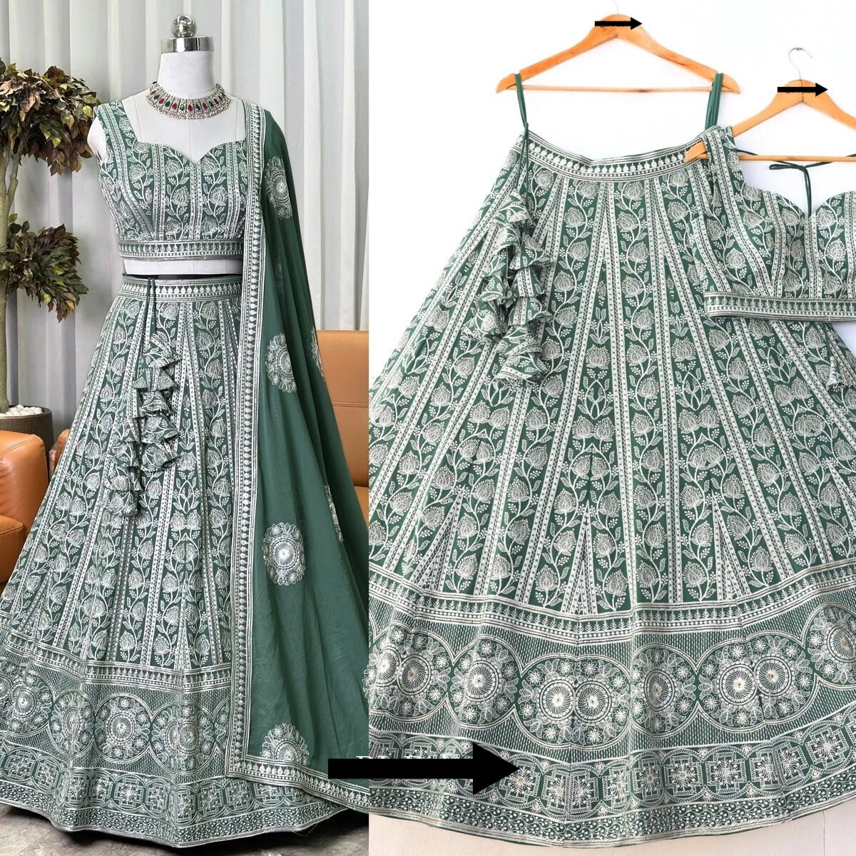 - You can explore the various options available online to find the perfect Lehenga Choli that suits your taste and budget. A Faux Georgette Fabric Sequence Embroidery Work Mint Green Color Lehenga Choli is a popular choice for weddings and festive occasions where a Mint Green Color Lehenga Choli may stand out. Interestingly, the beauty of a faux Georgette lehenga is timeless.