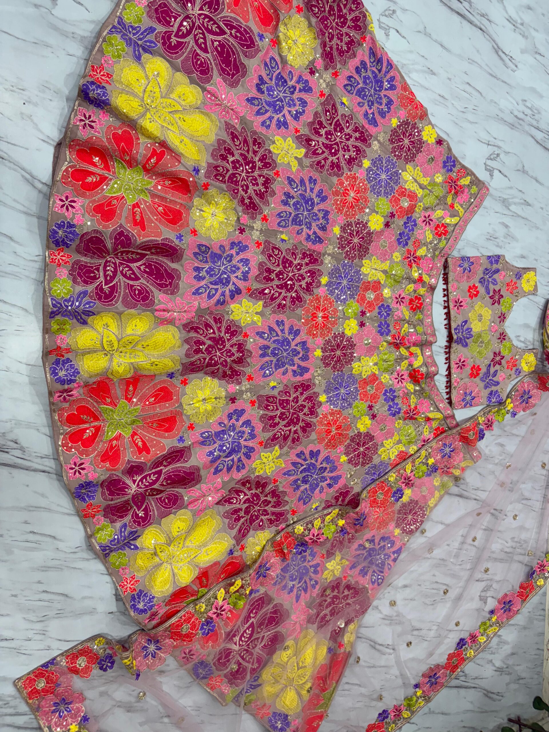 Elevate Your Wardrobe with Multi Color Faux Georgette Sequence Work Lehenga