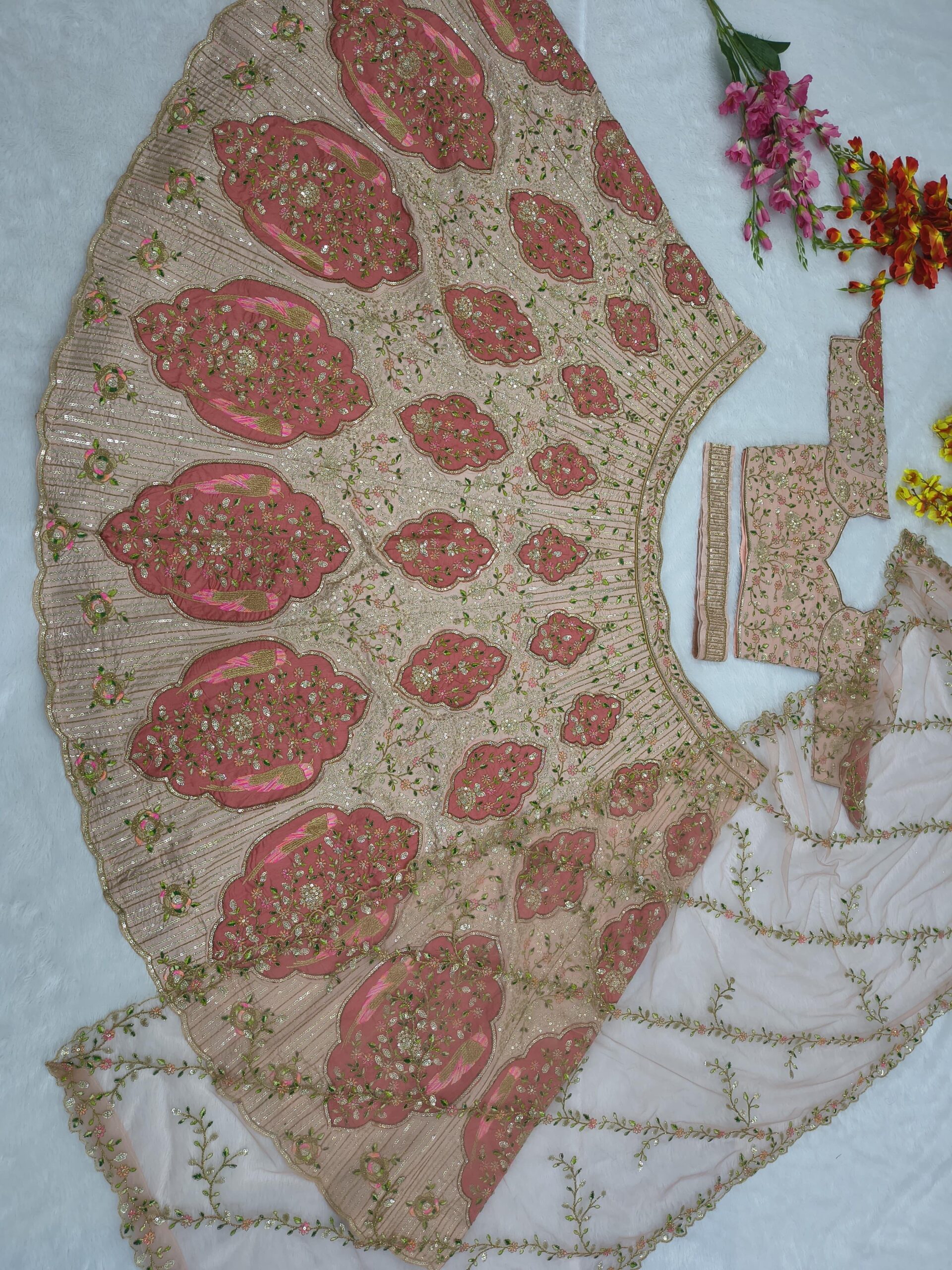 Lehenga : Premium Slub Silk Lehenga Embellished With Beautiful Embroidery Work & Dori Work With Heavy Sequence Work With Patch Work With Heavy Cancan And Canvas With Double Inner Covering With 3.5 Mtr Flare-(Semi Stitched)