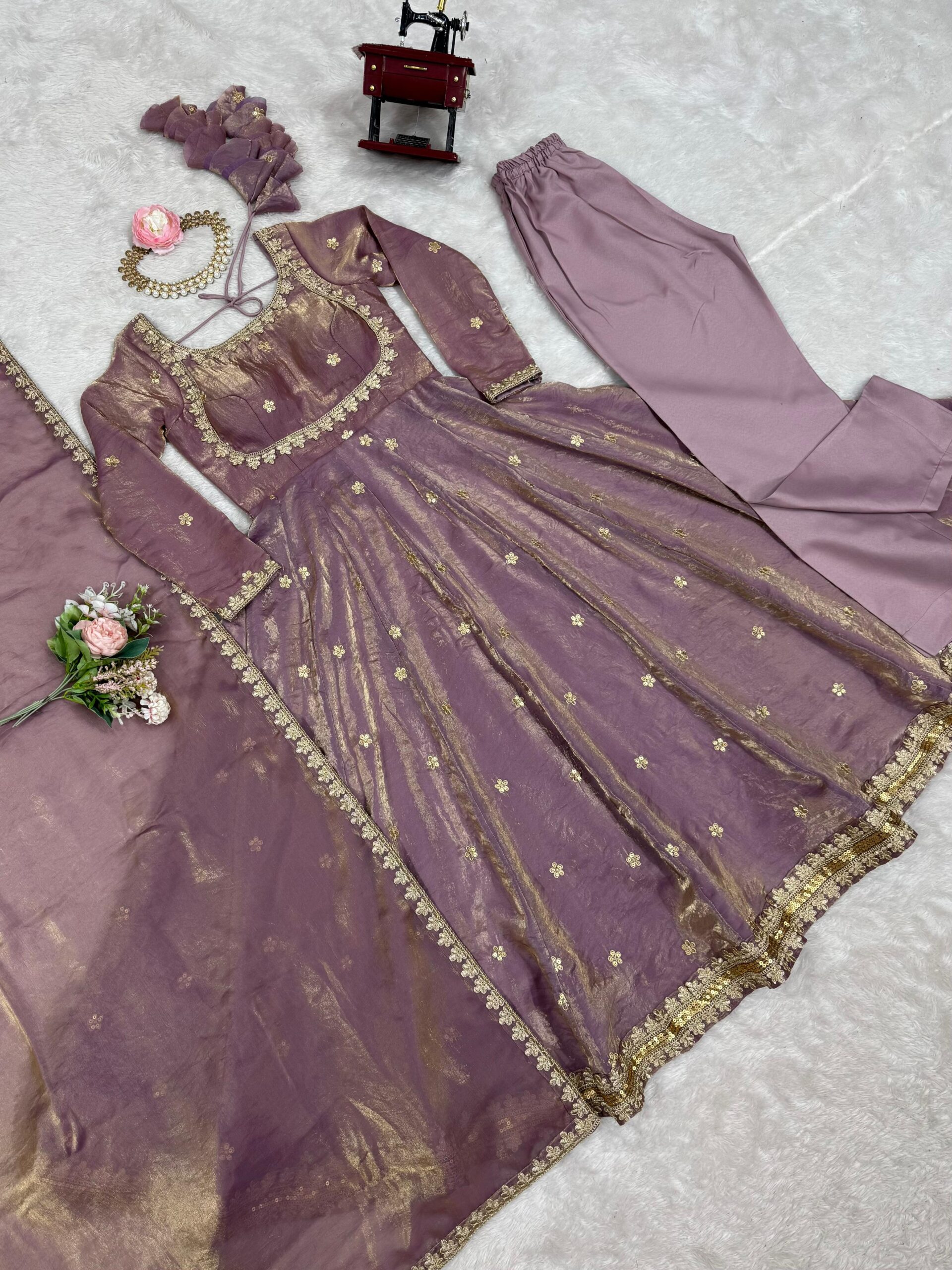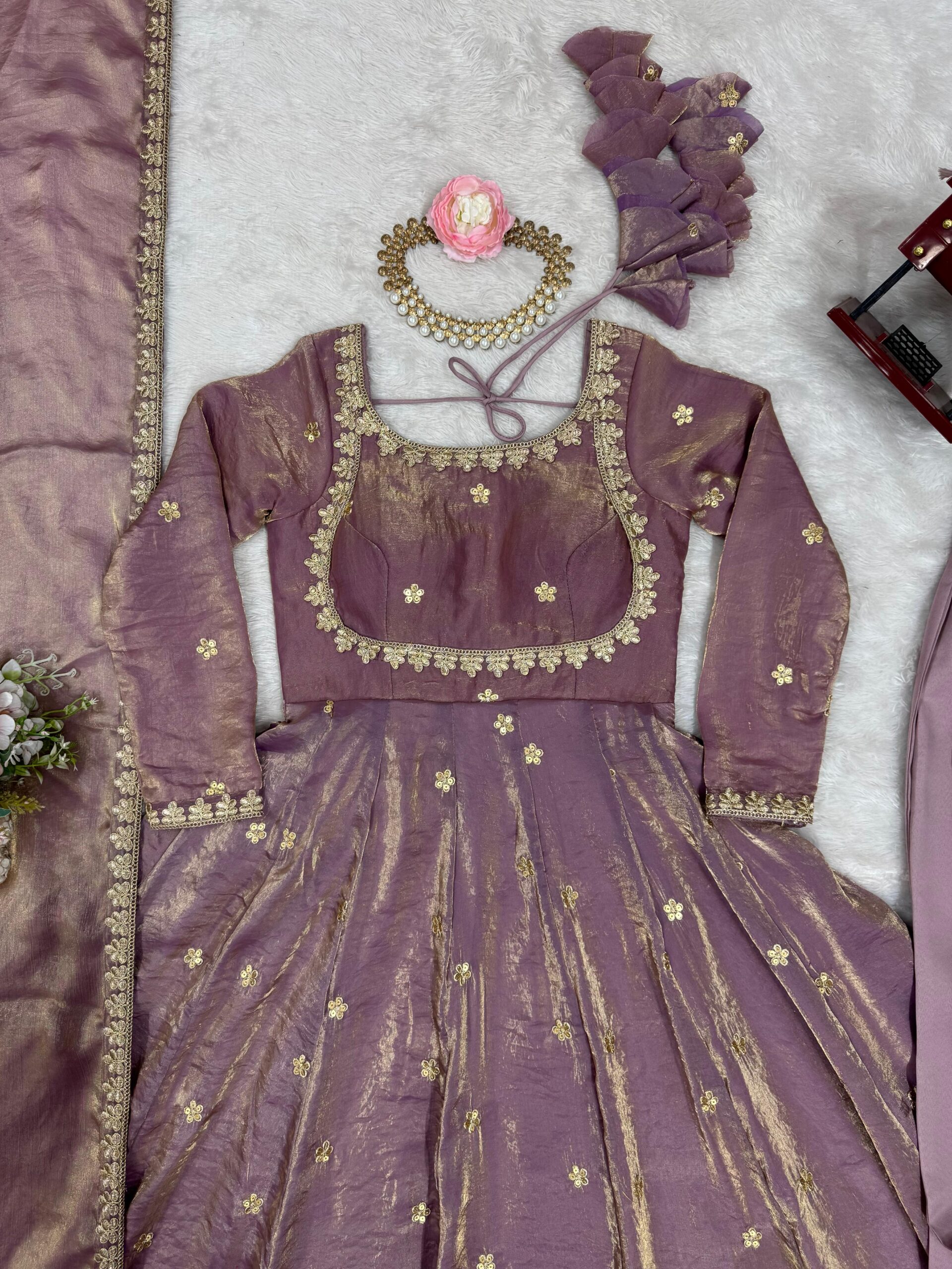 The Elegance of Onion Color Fendi Silk Fabric Sequence Work Gown