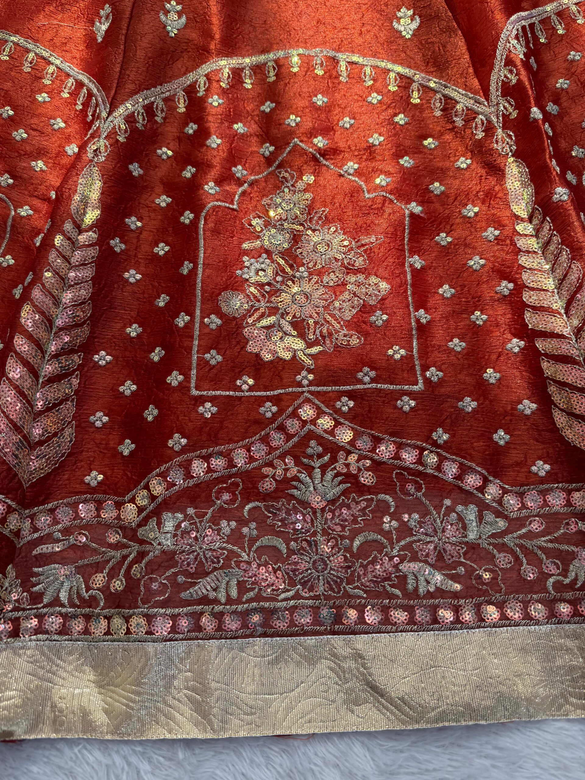 The Allure of Orange: Exploring Krishma Silk Fabric Thread With Sequence Work Lehenga