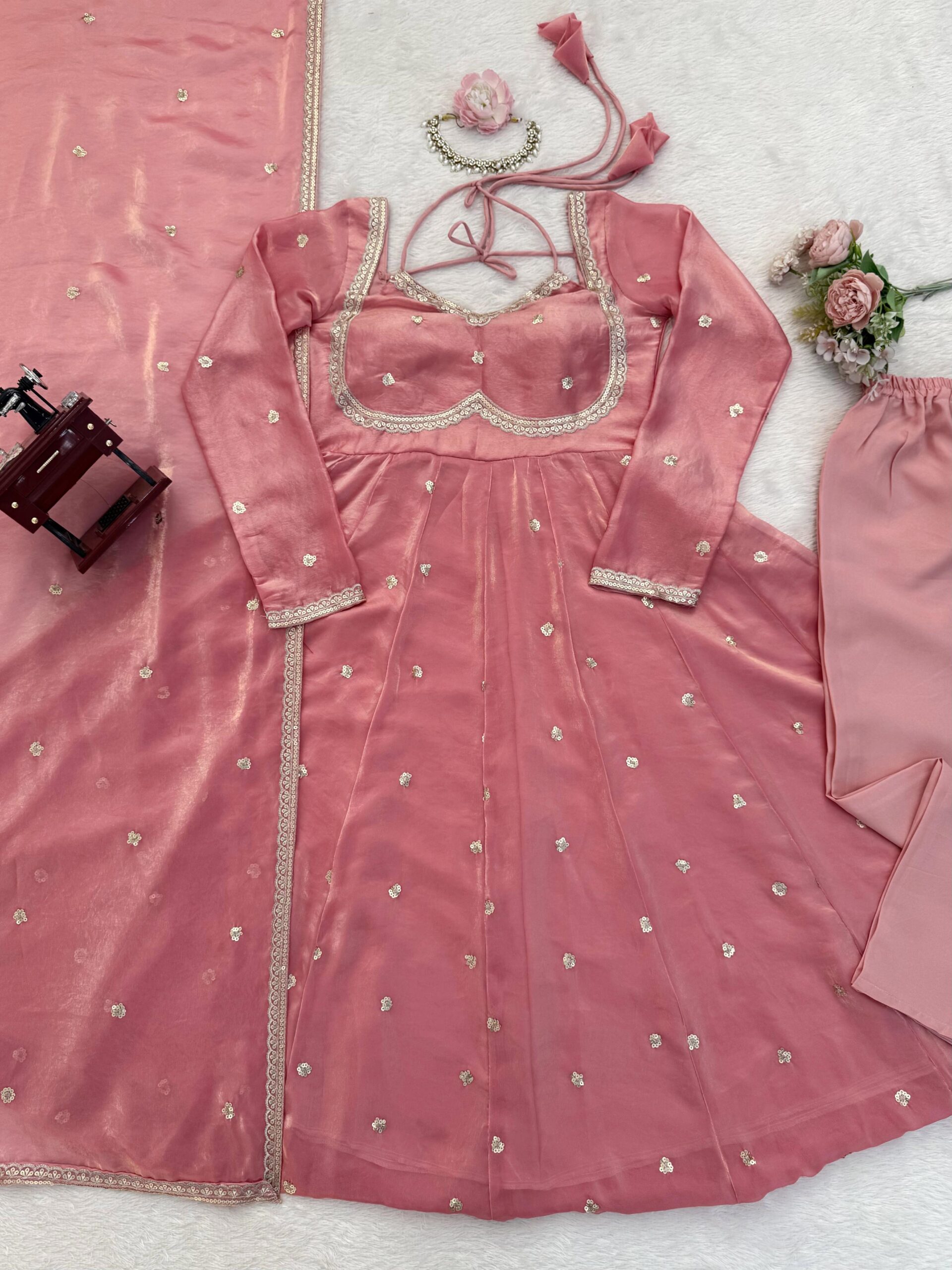 Peach Color Fendi Silk Fabric Sequence Work Anarkali Suit