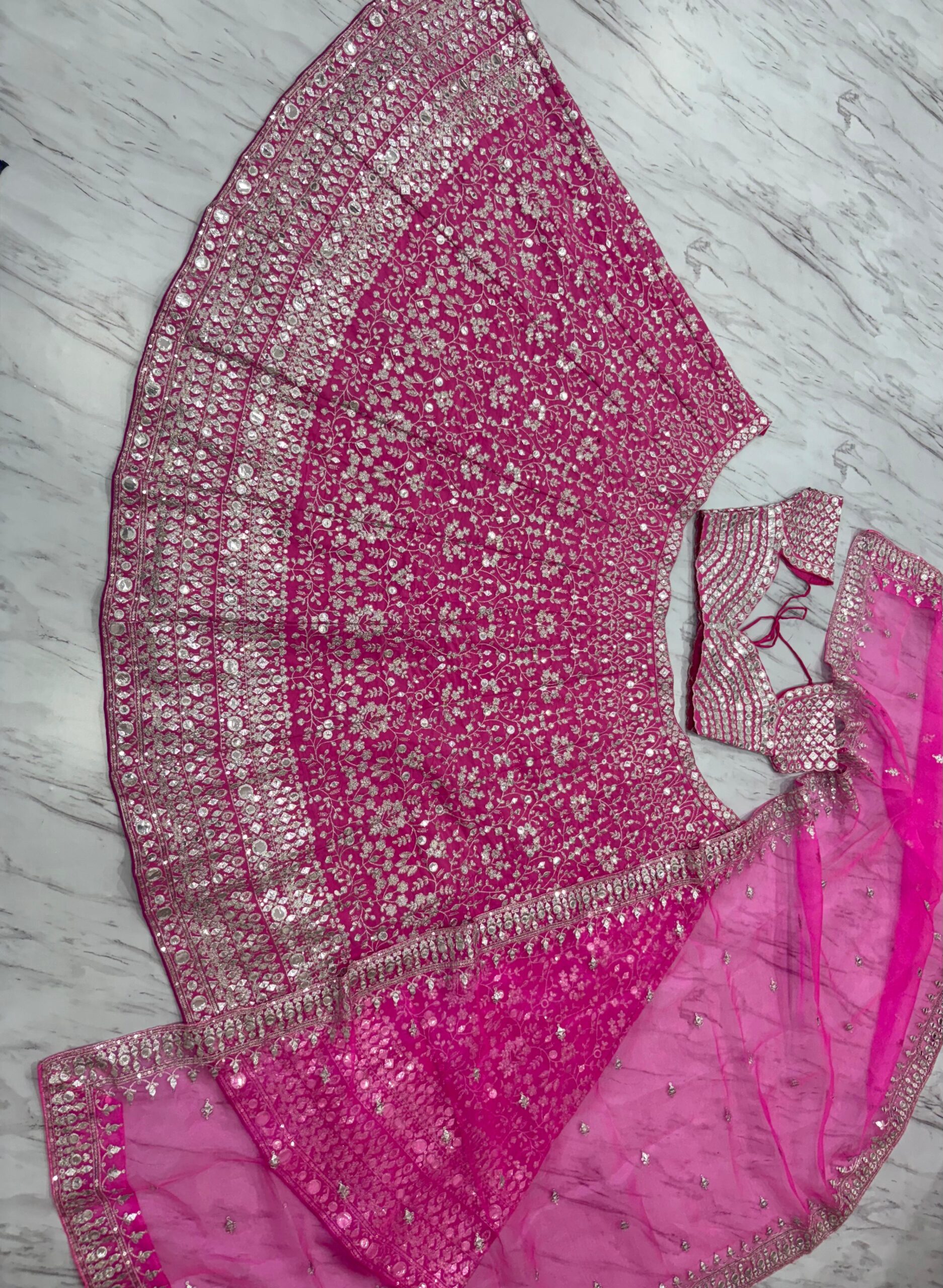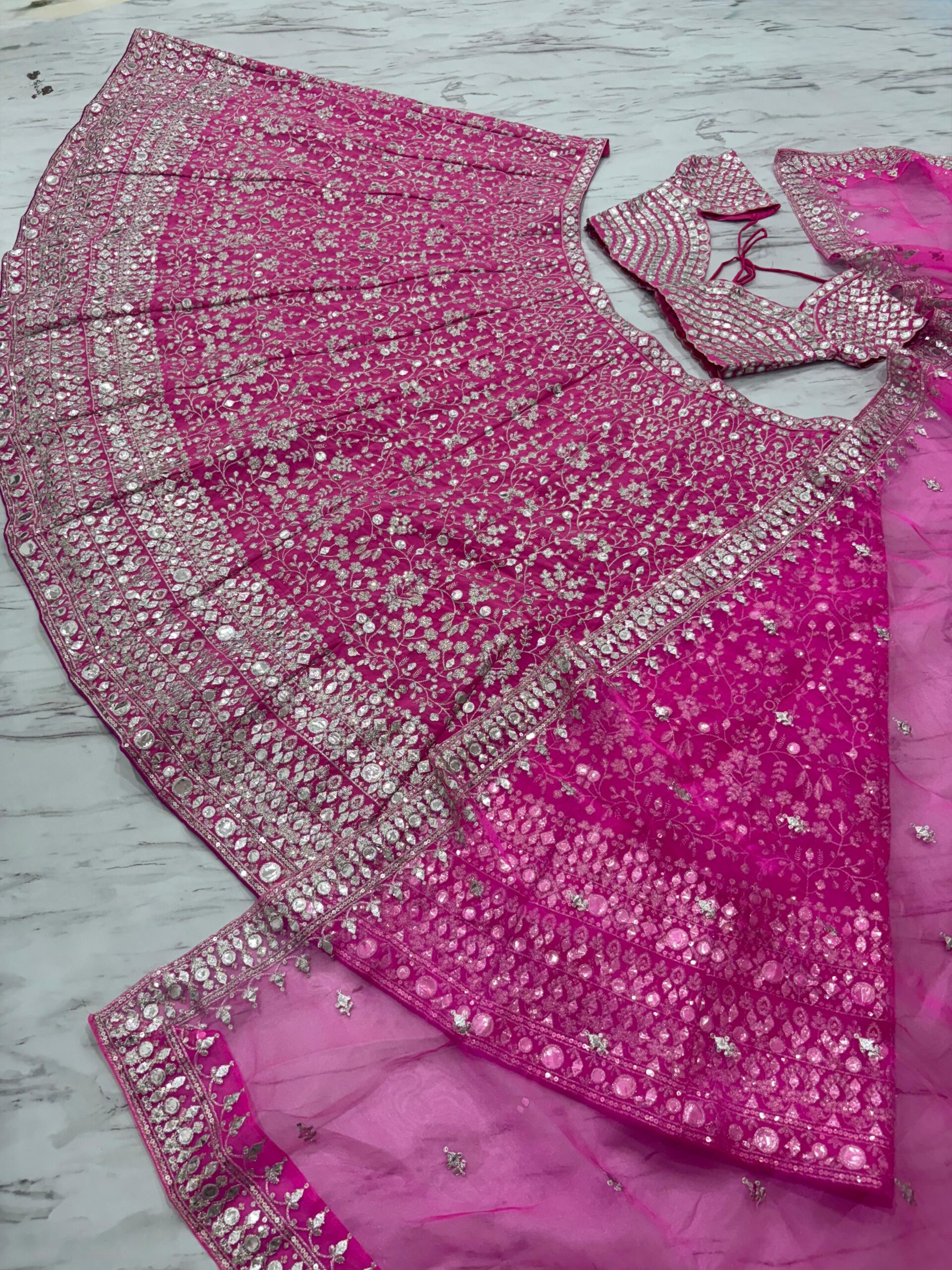 Pink Color Faux Georgette Fabric Sequence Work Lehenga