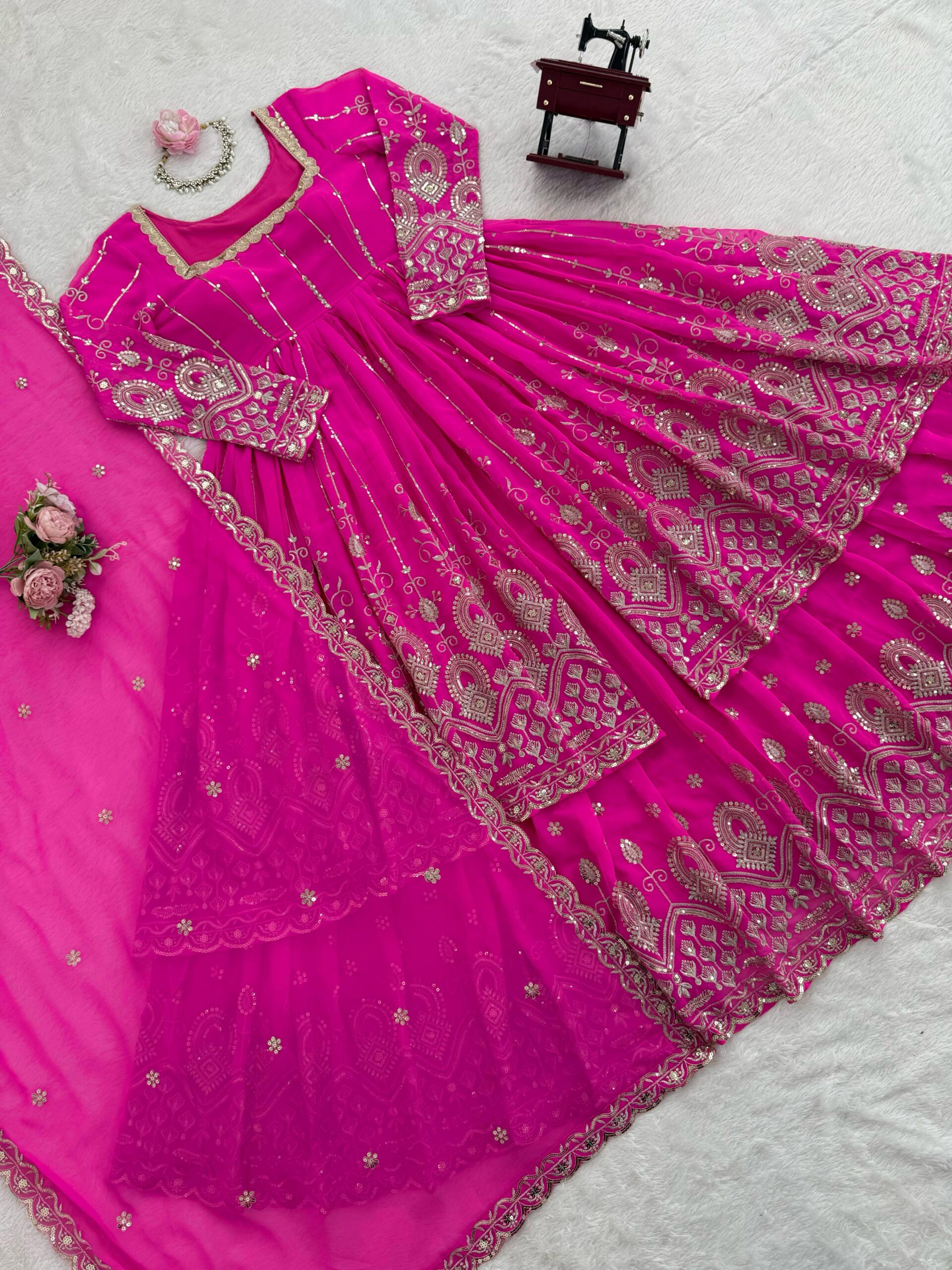 When it comes to festive attire, few outfits can match the elegance of a lehenga. The pink color faux georgette fabric sequence work top lehenga set perfectly embodies grace and style. This exquisite ensemble is designed for those who wish to make a statement while enjoying comfort and sophistication.