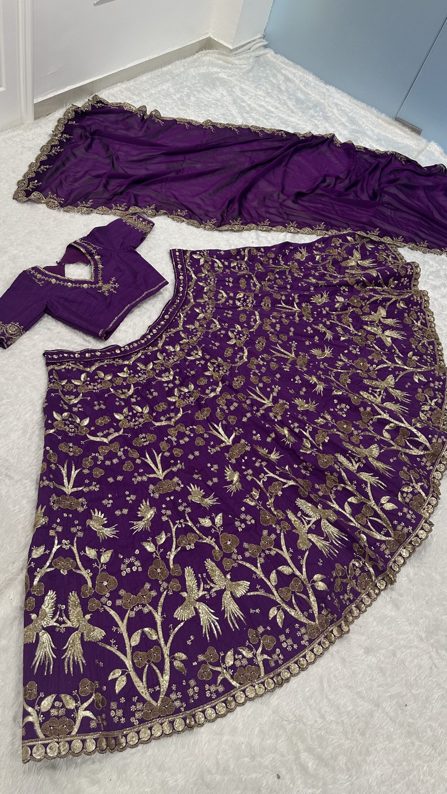 Elevate Your Style with a Purple Thai Silk Fabric Jari Work Lehenga