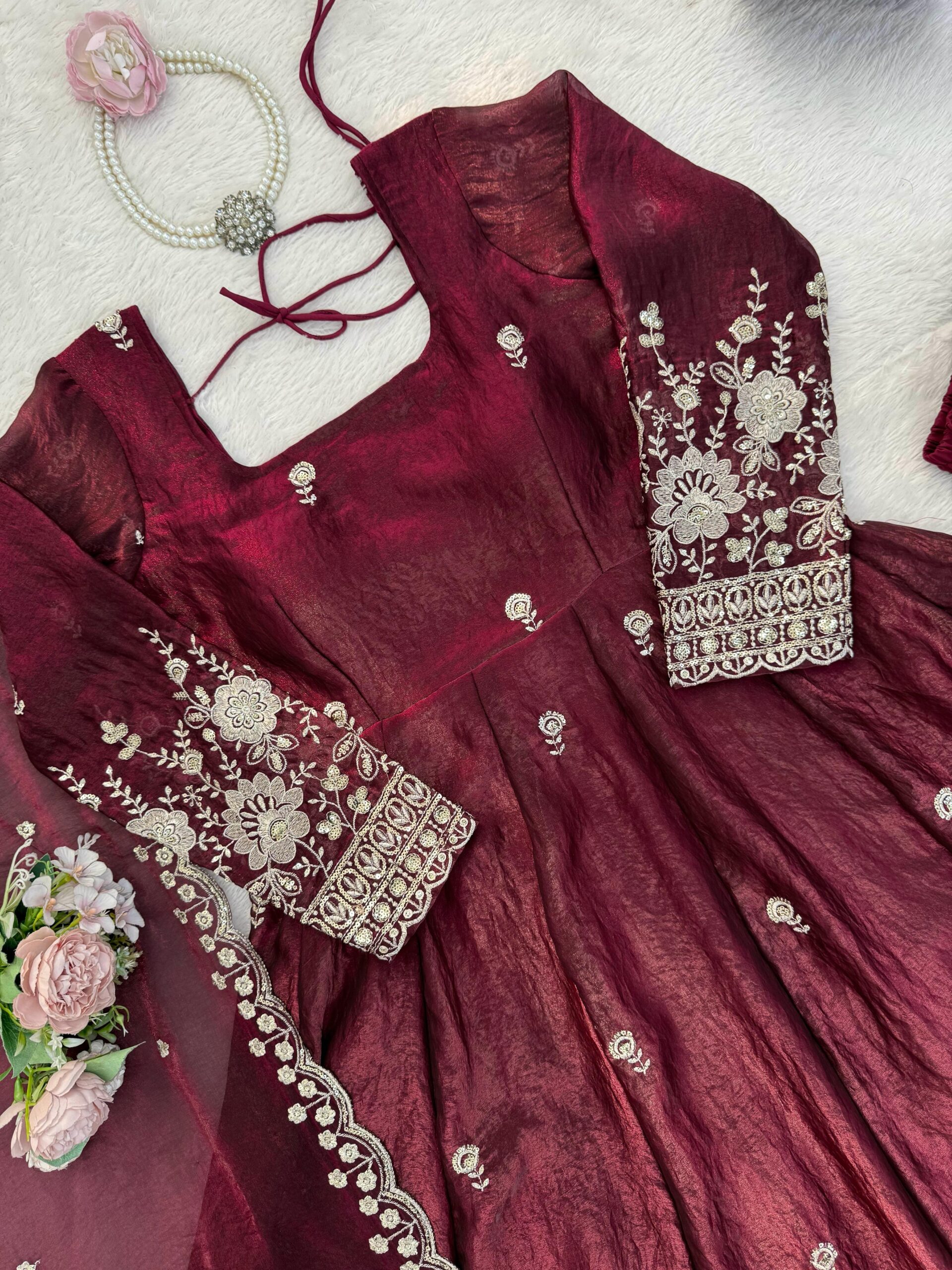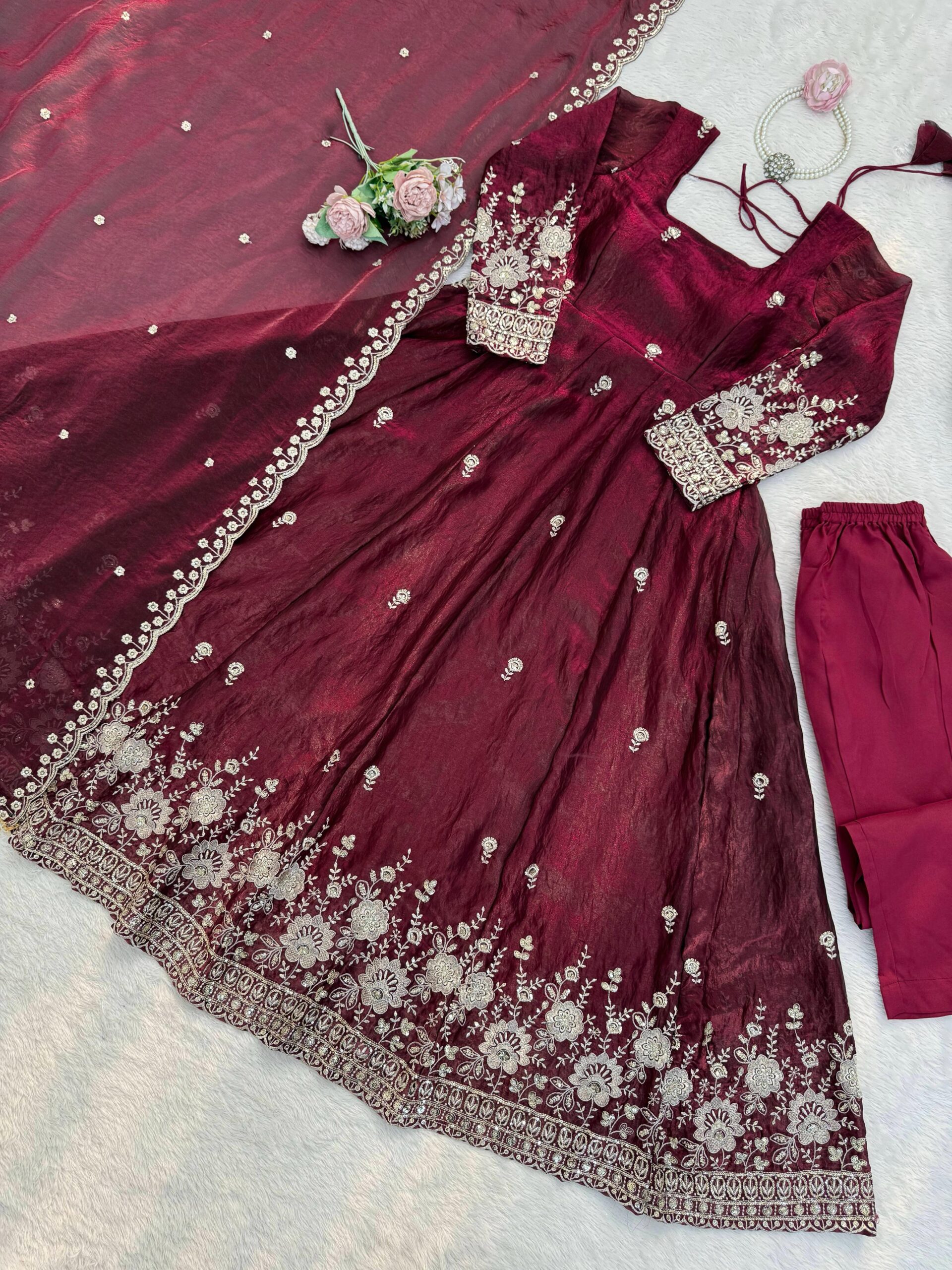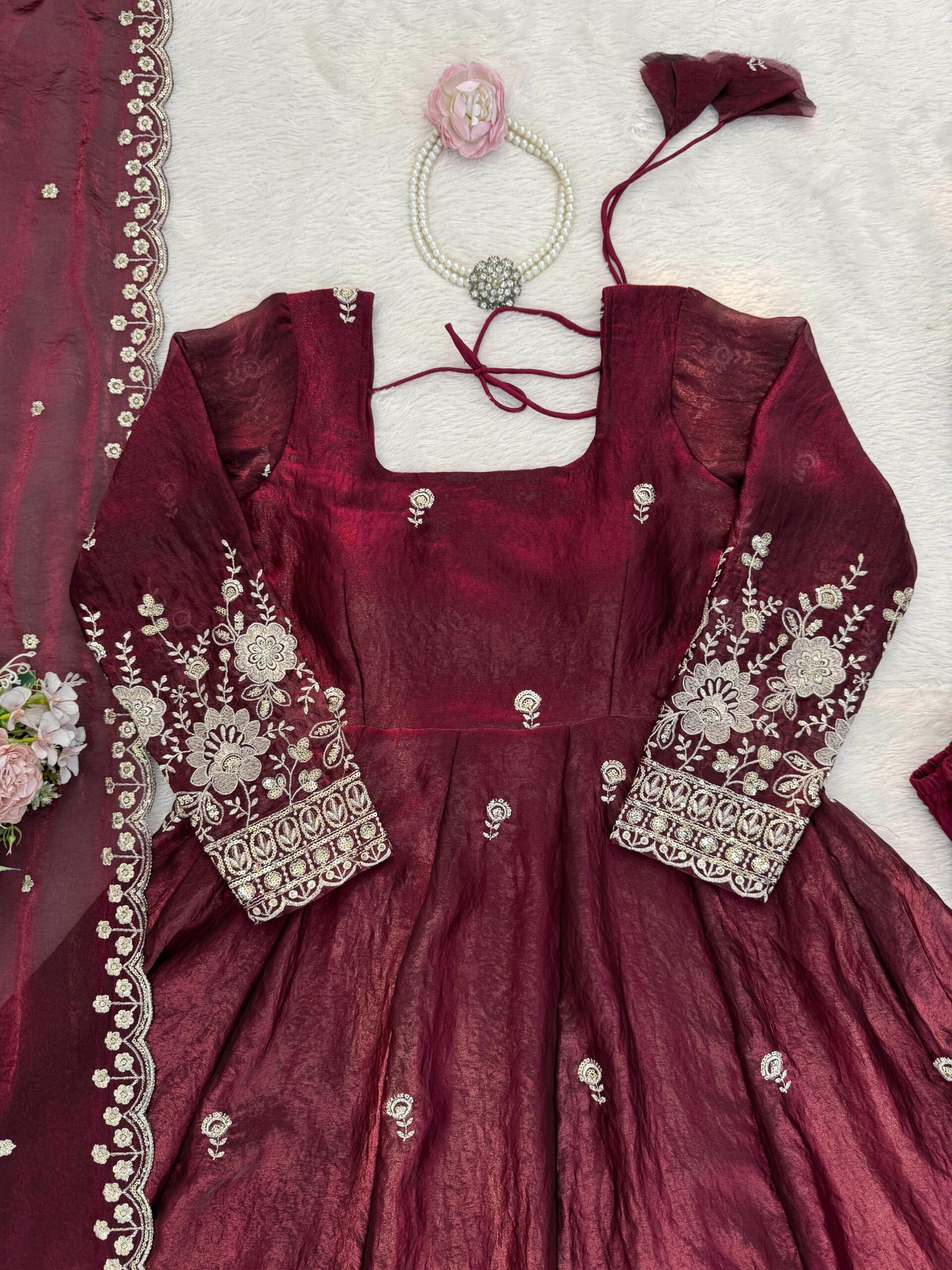 Anarkali suits have long been a symbol of grace and sophistication in traditional Indian wear. Their flowing silhouette and intricate designs make them a favorite among fashion enthusiasts. The Rani Pink shade, the Fendi SIlk fabric, and the classic Anarkali suit style come together splendidly in the Anarkali Suit, which stands out in this collection, blending traditional aesthetics with modern fashion trends.