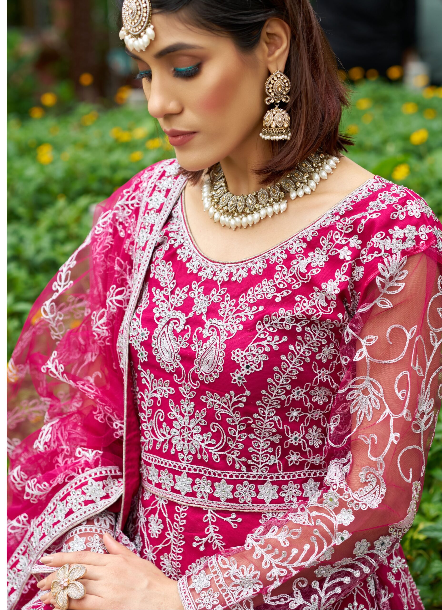 Heavy embroidery work on Rani Pink color pure butterfly net fabric transforms simple outfits into opulent creations. The intricate designs often feature floral motifs, geometric patterns, or traditional embroidery techniques. These reflect rich cultural heritage, emphasized in a Rani Pink Net Fabric Suit.