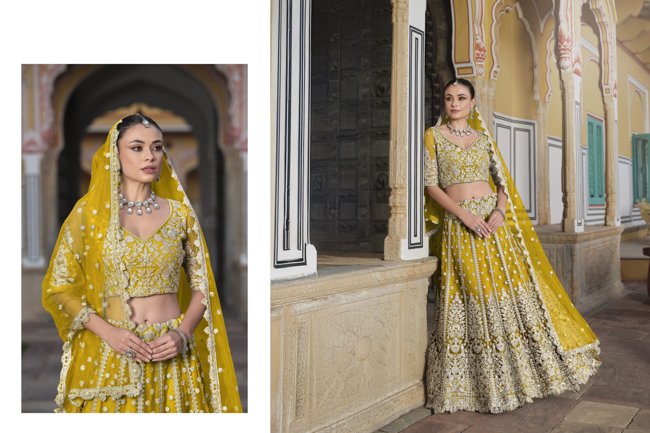 - Whether you prefer soft pastels or bold fuchsias, a Yellow bridal lehenga allows every bride to showcase her personality. Explore the charm of Yellow bridal wear and embrace the elegance of contemporary fashion woven into rich traditions.