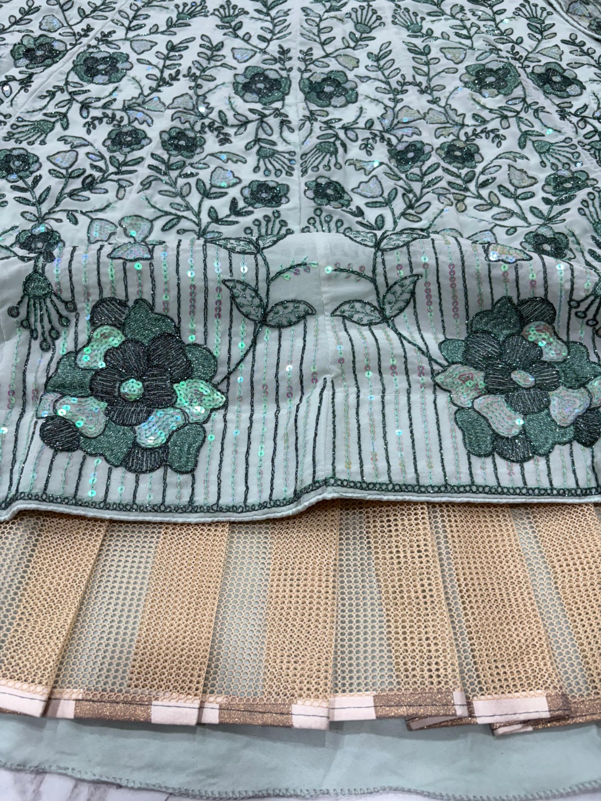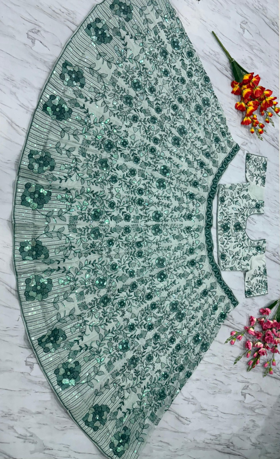 The use of faux georgette fabric offers numerous advantages. This lightweight material drapes beautifully, which is crucial for creating that flawless silhouette. Additionally, it is easy to maintain, allowing wearers to enjoy the intricate design without worrying about extensive care. Moreover, the blend of comfort and style that faux georgette provides makes it a popular choice.