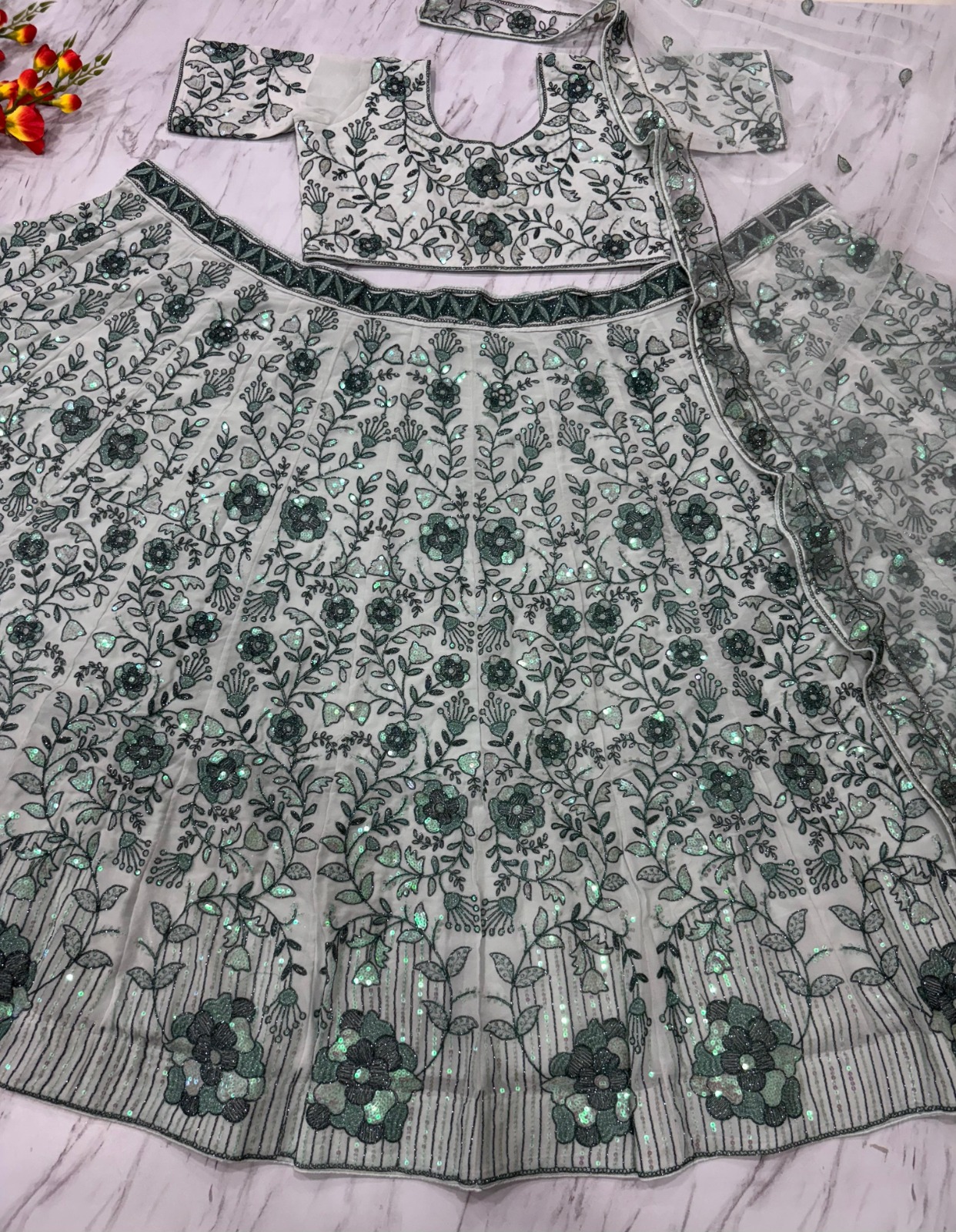 In conclusion, opting for a White color faux georgette fabric Sequence Work lehenga is a great choice for anyone looking to invest in a versatile and stylish garment. With its elegance and comfort, it’s certain to be a cherished addition to any collection.