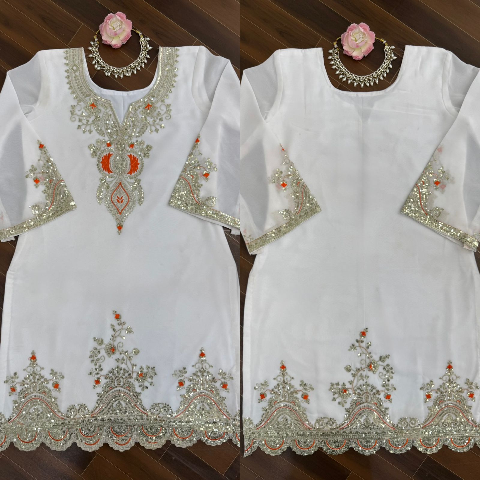 Be the first to review “White Color Faux Georgette Fabric Sequence Work Sharara Set”