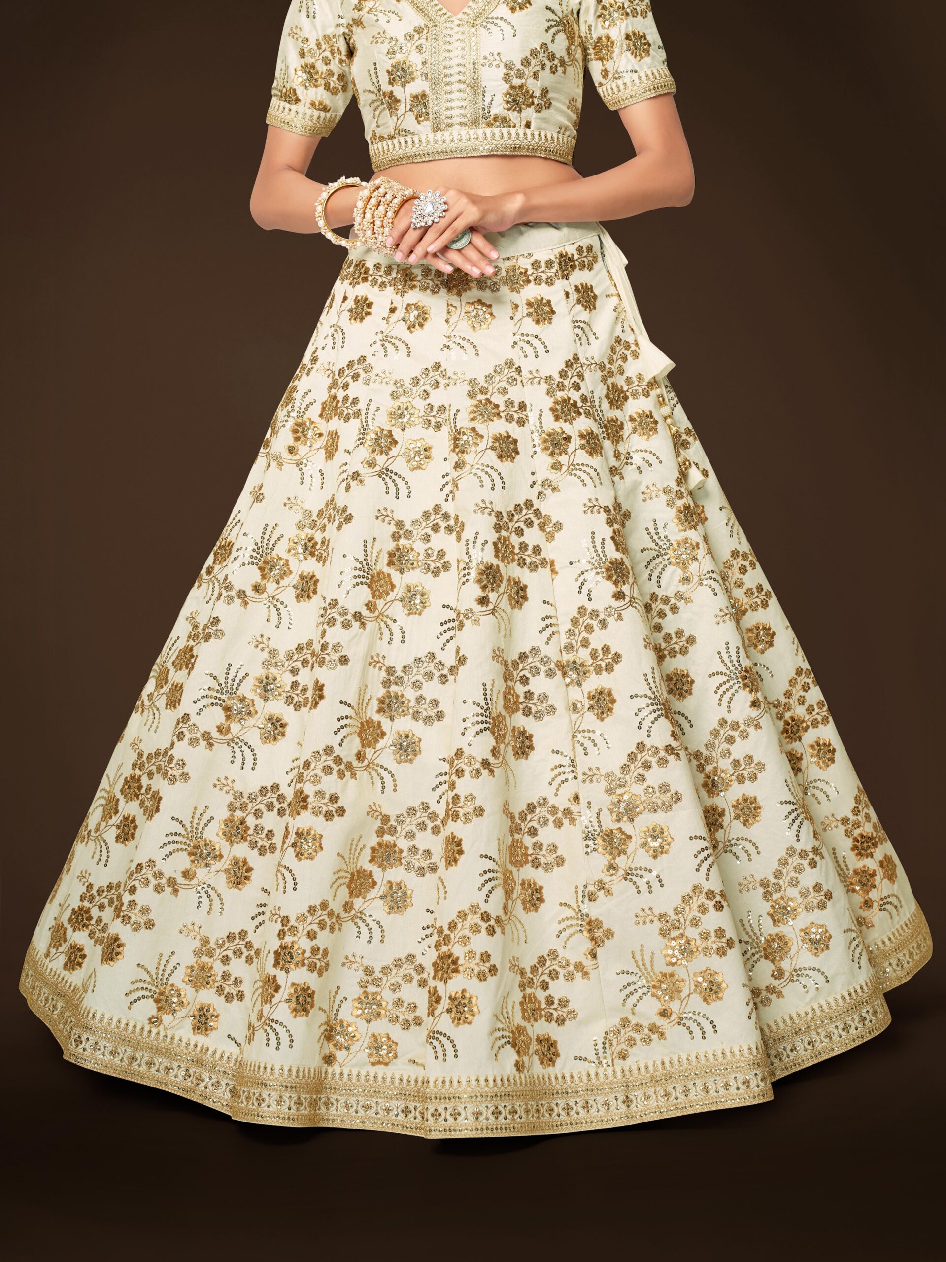 In conclusion, a White color slub silk fabric lehenga embellished with sequence and embroidery work is an absolute must-have for your wardrobe. Its elegance and versatility allow you to shine on any occasion. You can celebrate the joy that comes with wearing a beautiful garment.