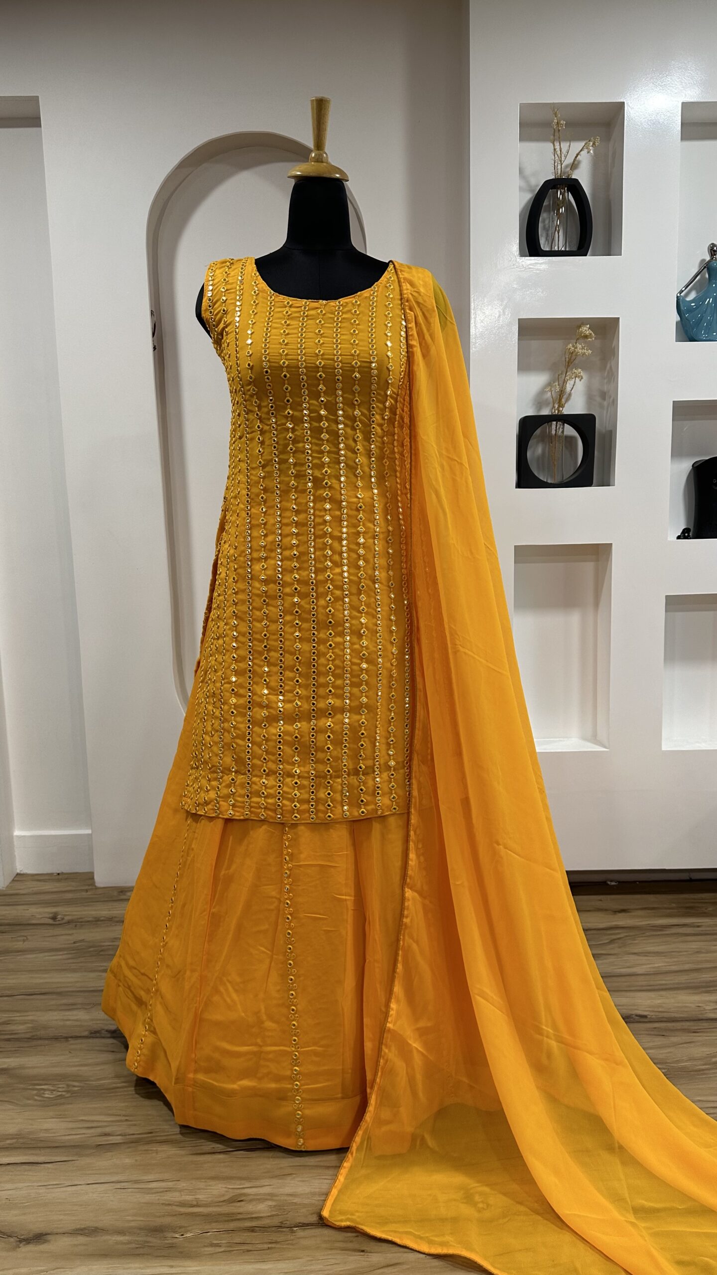 - Discover the beauty of yellow georgette fabric, perfect for festive occasions like Haldi ceremonies. This lightweight and elegant fabric enhances traditional Indian wear, making it a popular choice for celebrations. Explore the stunning features of a Haldi special lehenga set, showcasing intricate paper mirror work that adds glamour to your look. Learn essential styling tips that focus on elegant jewelry choices and chic hairstyles to complement your yellow lehenga.